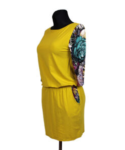 Mugav ja naiselik pehmest ja venivast kangast (80%viskoos, 20%elastaan). Avara kaelusega kleidil on puusadel kumm ja taskud. Selle mugava kleidiga võib minna nii tööle kui peole ja suure tõenäosusega jätad selle selga ka kodus, kuna see on üheteaegu nii kaunis kui mugav.